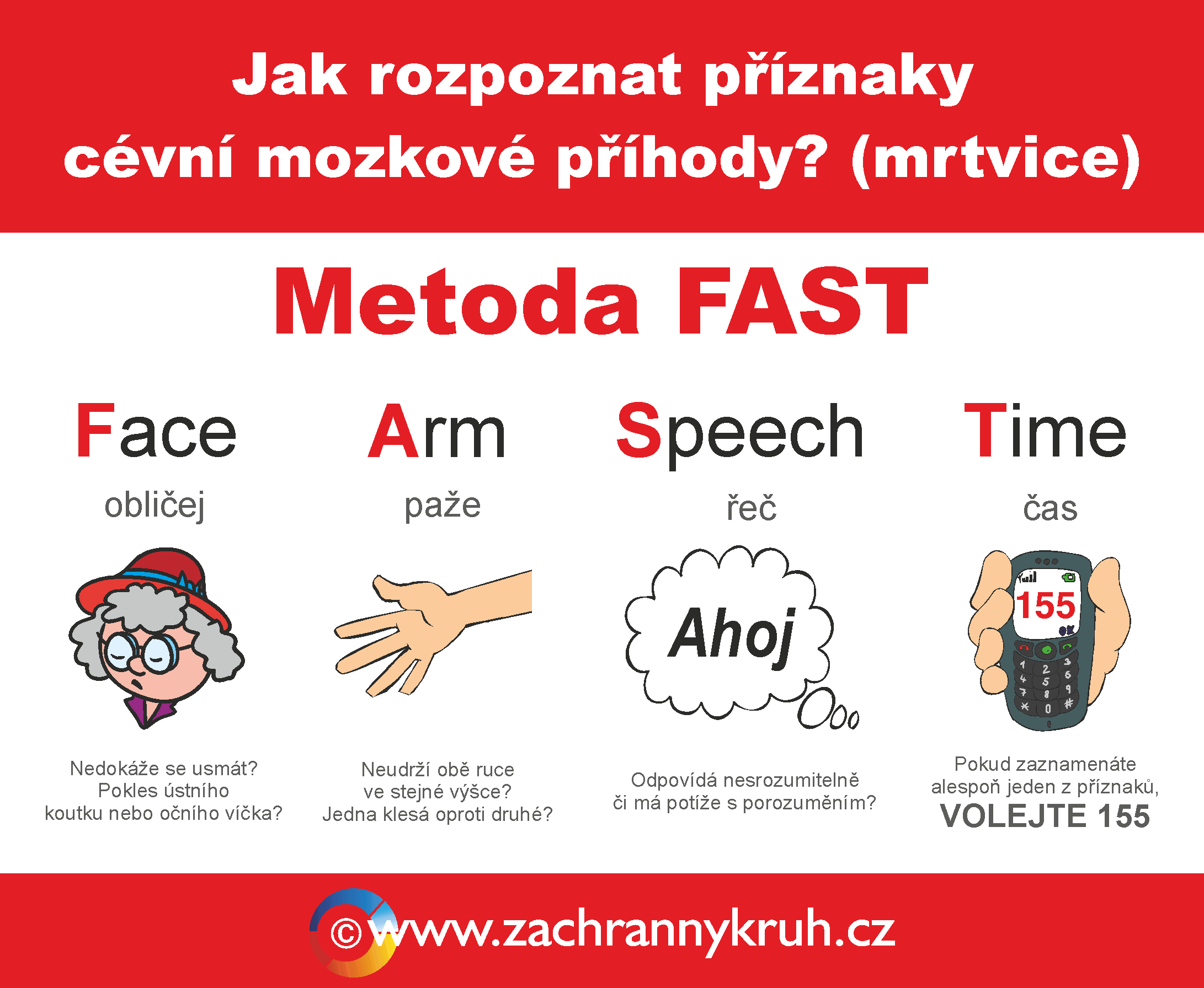 V případě cévní mozkové příhody pacienta polož na lůžko a pokud je při vědomí, mírně mu zvedni hlavu. Pokud je pacient v bezvědomí a po uvolnění dýchacích cest  dýchá normálně, ulož jej do zotavovací polohy. Jestli nedýchá nebo nedýchá normálně, postupuj podle pravidel resuscitace. Ihned na čísle 155 přivolej lékařskou pomoc.